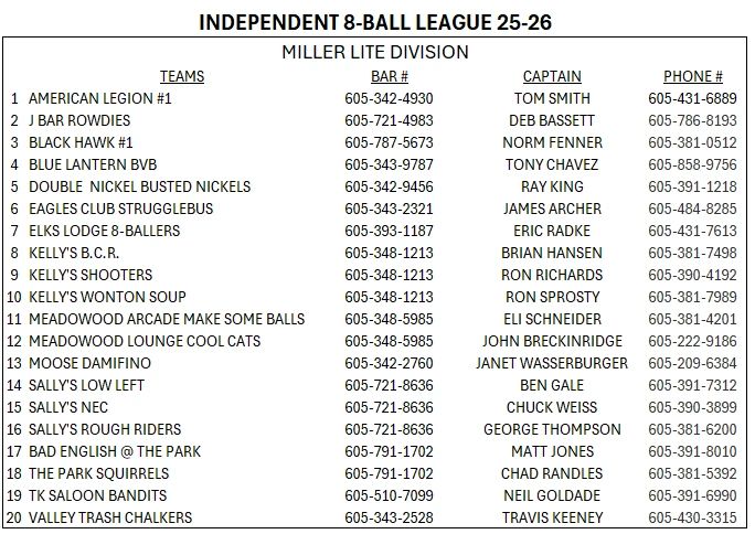 Copyright © 2022 Thursday Night Independent 8 Ball League - All Rights Reserved.